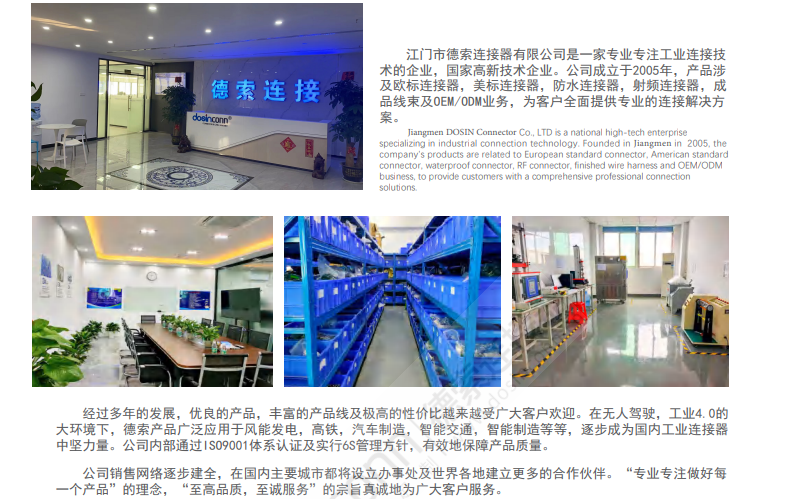 sma注塑头【德索连接器电话:400-6263-698】SMA注塑头的外壳和内导体通常采用铜或铜合金等导电性能良好的材料制成。这些材料的导电性能对SMA注塑头的频率特性具有重要影响。外壳和内导体的尺寸、形状以及它们之间的间隙都会影响到射频信号的传输效率和稳定性。