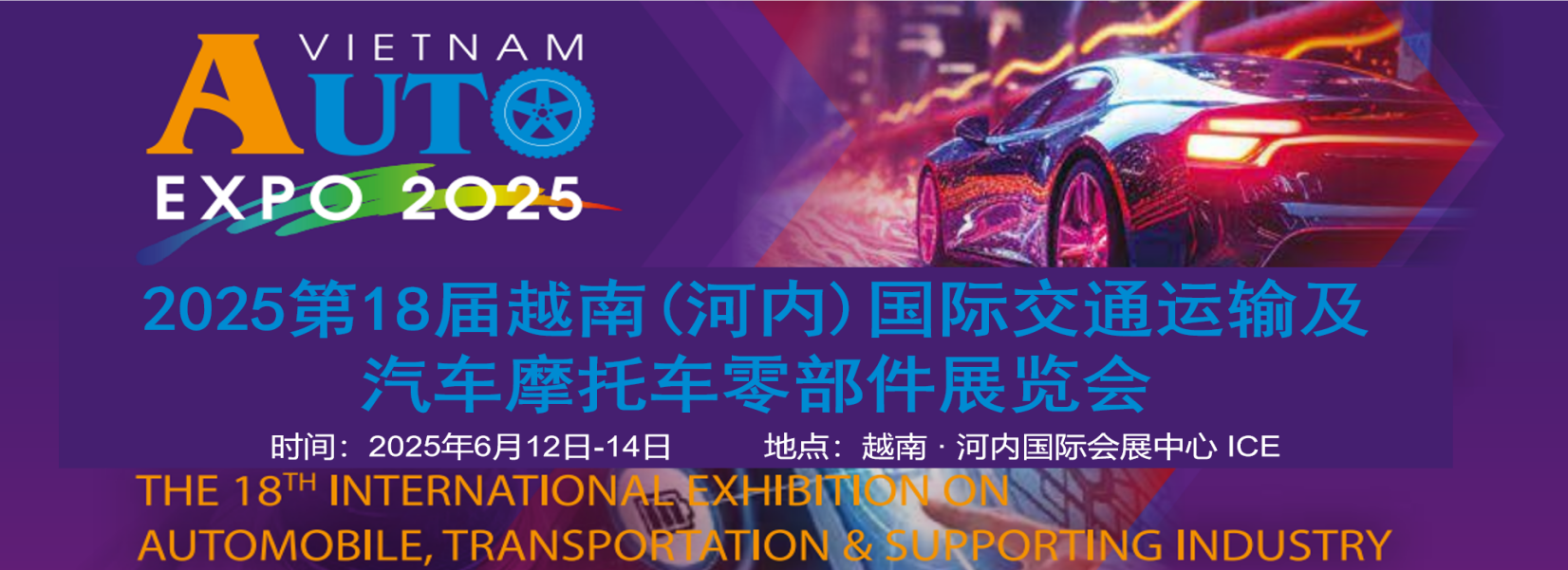 2025第18届越南(河内)国际交通运输及汽车摩托车零部件展览会(AutoExpo2025)是每年一届在越南河内市举办的汽车摩托车电动车品牌推广与配套产业领域行业展会。由越南工业与贸易部、工业政策和战略研究所、支持组织的专业汽车、摩托车、电动车及零部件行业展览会,已成功举办17届
