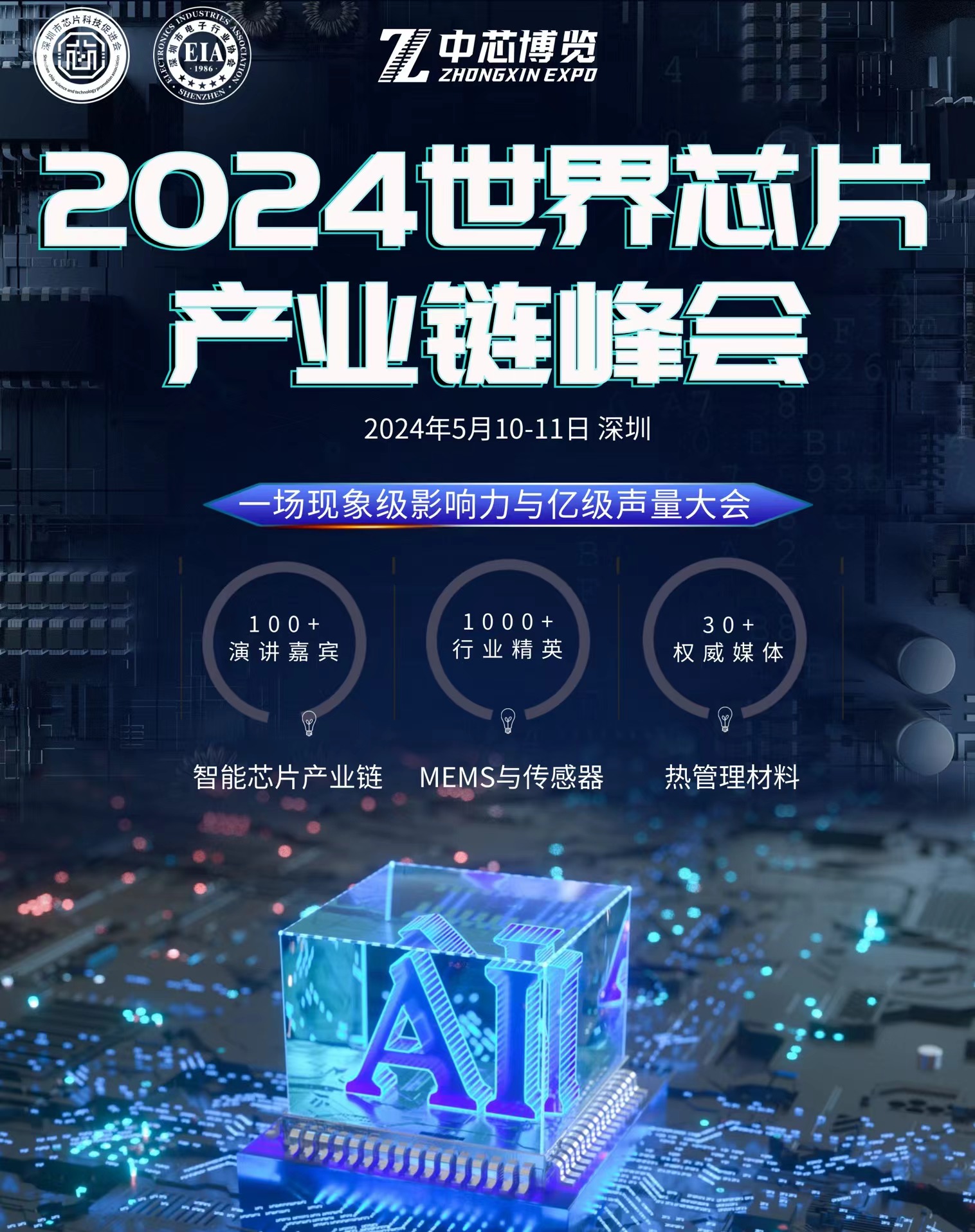 组织单位 深圳市人民政府 深圳市科技创新委员会 深圳市科学技术协会 深圳市工业和信息化局 深圳市商务局 深圳市芯片科技促进会 深圳市电子行业协会 中芯博览(深圳)科技有限公司 新一代信息技术专业委员会 汽车电子专业委员会 电子封装材料专业委员会 电子元器件专业委员会 电子行业标准专家委员会 前海方舟电子科创产业基金 深圳电子产业战略投资基金 中芯博览(深圳)科技有限公司 大会背景 政策指引 芯片作为现代化电子产业的核心以及国民经济和社会发展的战略性、基础 性、先导性产业。“集成电路”和“芯片”在全国两会时光中热度不断,众多“芯” 声释放出国家战略与产业信号,预计到2024年芯片市场规模将突破千亿元。 地域优势 深圳作为我国规模最大、整体水平最高的电子信息产业的重要基地之一, 是全国具影响力的芯片应用市场。 正因此,深圳也聚集了众多海内外芯片产业客商与投资者。大会选址深 圳,依托深圳深厚技术沉淀,与繁荣的芯片贸易市场,为参会企业与客商提供 一个技术交流、产品展示、贸易洽谈的全方位平台。 权威背书 世界芯片产业链峰会,荣获深圳市人民政府、深圳市芯片科技促进会与深 圳市电子行业协会等单位的支持主办;数千家会员单位鼎力支持;上百家权威 媒体共同发声;共同打造一场现象级影响力与亿级声量大会。