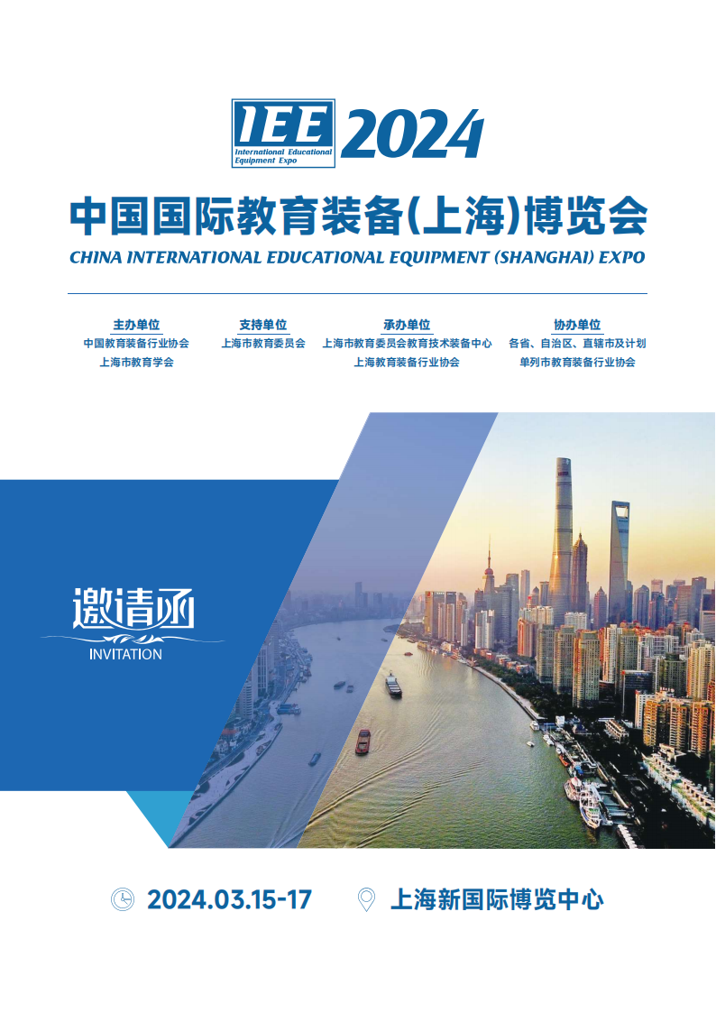 为了深入学习贯彻党的二十大精神,深入学习贯彻习近平总书记关于教育的重要论述,积极落实《中华人民共和国国民经济和社会发展第十四个五年规划和2035年远景目标纲要》《上海市教育发展“十四五”规划》等文件要求,加强国内外教育装备研究研发与运用管理的交流与合作,更好地服务社会主义现代化强国建设,由中国教育装备行业协会、上海市教育学会主办,上海市教育委员会支持,上海市教育委员会教育技术装备中心、上海教育装备行业协会等承办的2024中国国际教育装备(上海)博览会于2024年3月15日-17日在上海新国际博览中心举办。