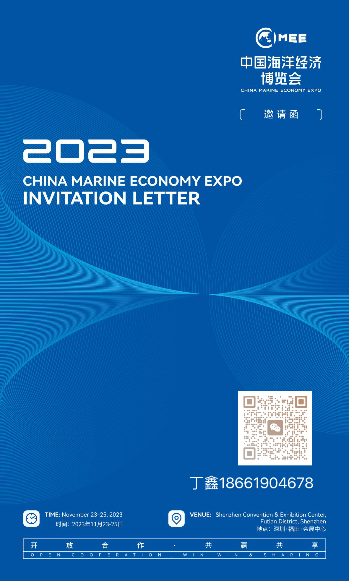 2023中国海洋经济博览会 时间:2023年11月23日-25日 地点:深圳福田会展中心 承办单位 深圳市特区建设发展集团有限公司 深圳全球海洋中心城市建设促进会 执行单位 深圳海博会有限公司 招展组织单位 北京振威展览有限公司 联系人:丁鑫18661904678