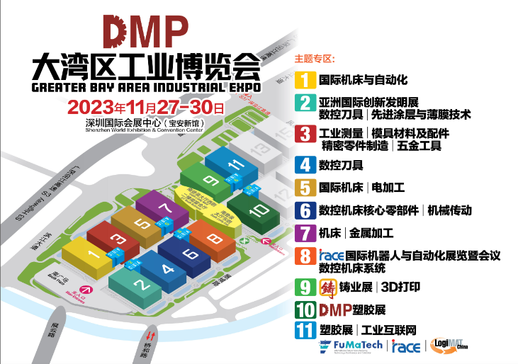 DMP 大湾区工博会(DMP机床展),以技术和创新为主导,是致力于连接科技与工业,赋能行业和全生态的合作平台。展品囊括数控机床、数控刀具、智能制造系统、工业机器人、钣金激光、塑胶及包装、模具制造、 工业互联网、工业测量、3D 打印、精密零件、数字化工厂、人工智能、压铸铸造、五金工具、 金属材料等各个领域,涵盖原辅材料、关键零部件、先进制造装备、整体解决方案、个性化定制等智造产业链条全球最新技术、产品,以规模之大、品类之全、观众之多,深得业界信任,成为粤港澳大湾区先进制造业技术创新的风向标。