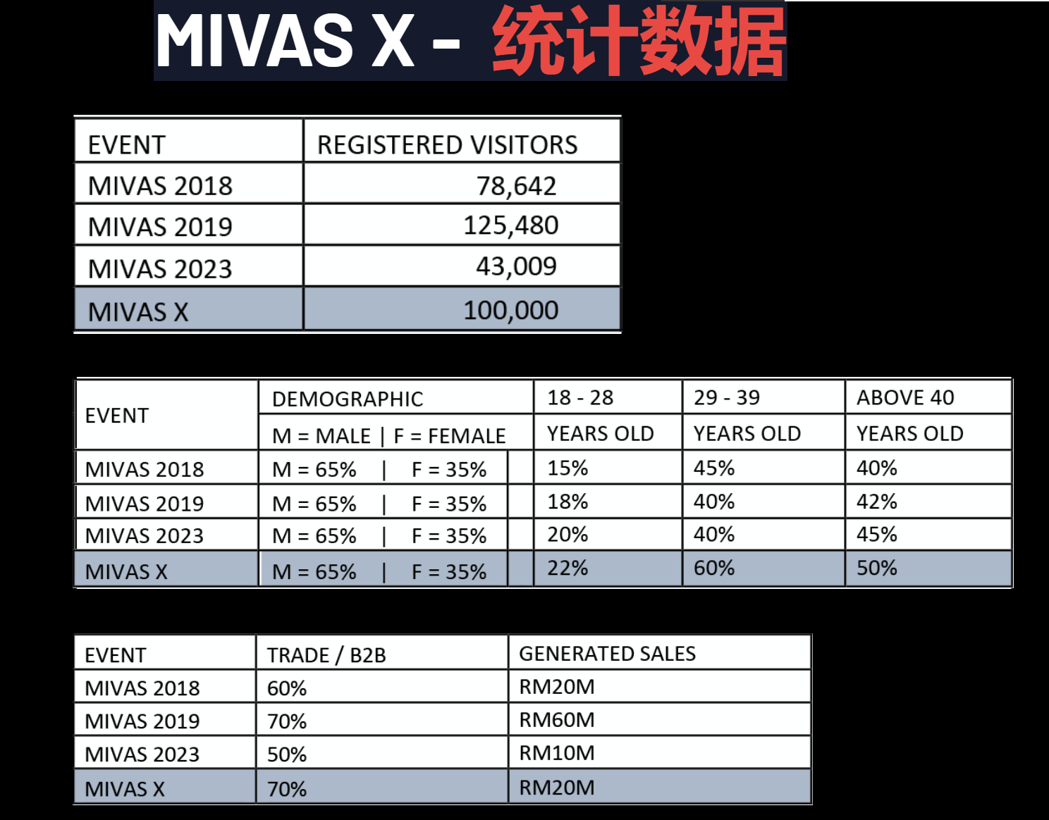 2023年马来西亚电子烟展将是自2018年以来在马来西亚举办的第四届展会。 第一届展会于2018年9月在吉隆坡太子世界贸易中心开始,大约100家来自国际的参展商。主办方通过Facebook全球范围内收到了超过78,000名注册访客。 第二届展会于2019年3月在同一场地举行。它比以前更大,此届展会有超过150家本地和国际参展商,主办方通过Facebook全球范围内接待了超过120,000名注册访客。 第三届展会将于2022年3月26日至3月27日在马来西亚MIECC国际会展中心举行。预计参展商约200家,参展观众2万人。 第四届展会将于2023年8月12日至8月13日在马来西亚MIECC国际会展中心举行。预计参展商约200家,参展观众2万人。 马来西亚成为所有vaping产品的亚洲中心,创造意识以及增长业务在过去的2个马来西亚展上取得了巨大的成功,马来西亚和全国范围内的vape场景都有所改善,需求增加,部分生活方式也有所改善。 友商们可以通过即将到来的2022年马来西亚电子烟展,在全球范围内共享和扩展您的品牌。 参展友商:Vape Empire 、Elfbar、Nevoks、Lost Mery、FLUM、MR FROG、Vapehome、Innokin、Elux、ice cream、Pura & New Acting、Kechaoda、Altery 、LUCKEE VAPE、Vecig & Yummy、LUCKEE VAPE、SOLO BAR、Tiptop、Omari-O、A-SENSE、RICCA PEACOCK、EB DESIRE