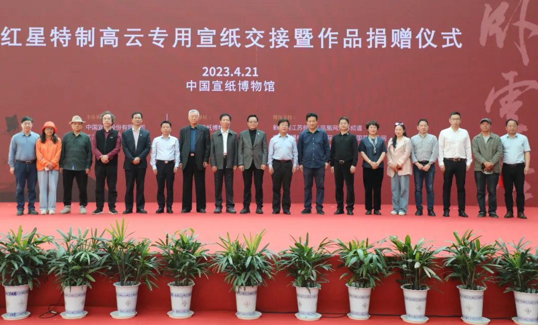 4月21日下午,由中国宣纸股份有限公司、江苏省中国画学会主办,中国宣纸博物馆承办的“红星特制高云专用 暨捐赠作品仪式”隆重举行。中国宣纸股份有限公司董事长、党委书记胡文军、江苏省中国画学会会长高云先后致辞,接着举行了高云作品捐赠和专用宣纸交接仪式。整场活动由中国宣纸股份有限公司副董事长、总经理朱大国主持仪式。