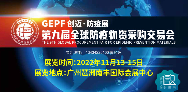 2022广东防疫物资采购交易博览会 防疫物资展览会,广州防疫物资采购会,防疫物资交易会,2022防疫物资展览会,广州防疫物资展会 第九届全球防疫物资采购交易会 同期召开:2022第九届大湾区(广州)国际医疗器械博览会 时间:2022年11月13-15日 地点:广州琶洲南丰国际会展中心 展会详情:13434225100 赖强
