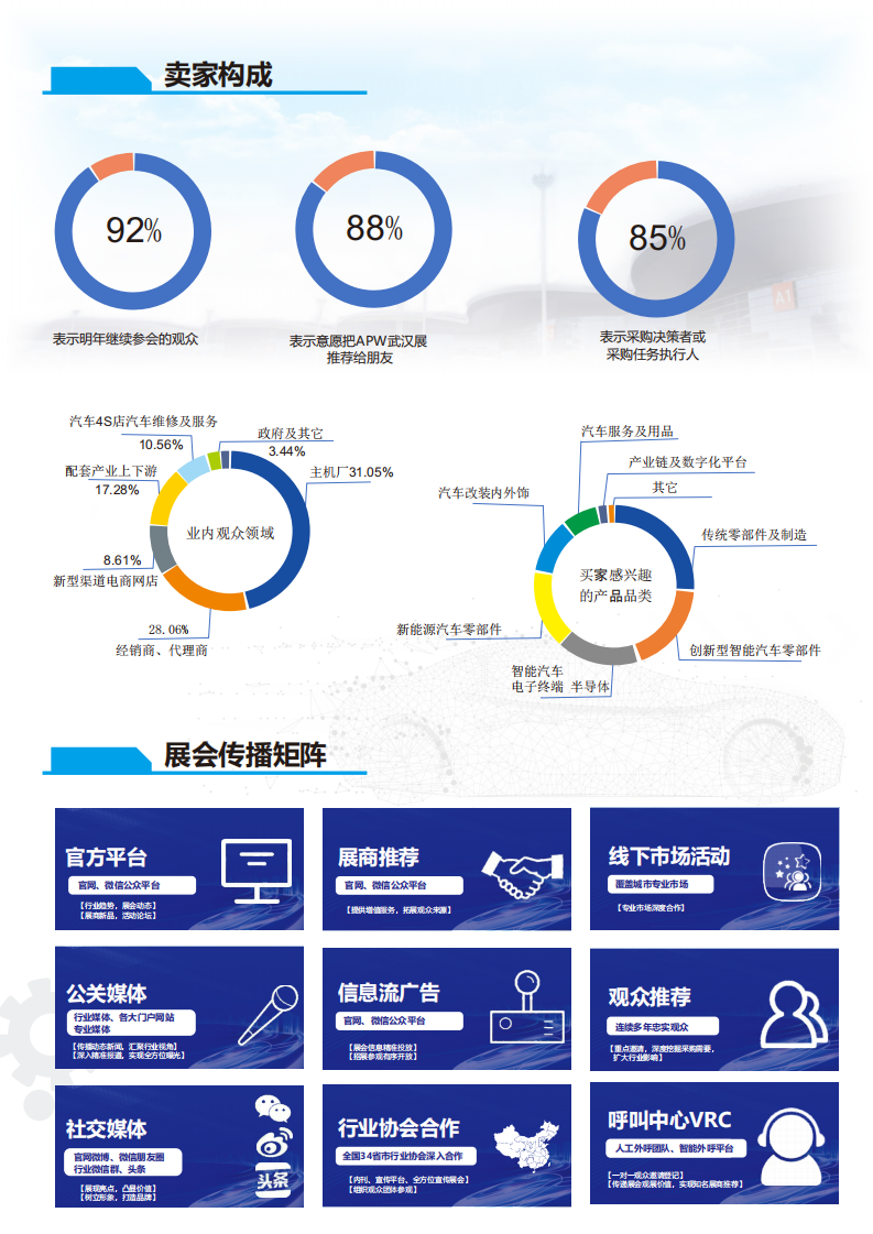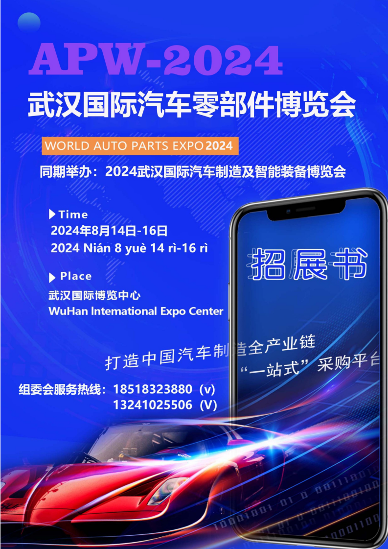 我们将以“2024中国(武汉)汽车零部件博览会”为契机,依托武汉市四通八达的区位 优势,充分发挥汽车产业集群和带动作用,有力充当 武汉建设国家中心城市的引擎,做强汽车全产业链,助力湖北省万亿汽车大走廊建设,使之迈向全国,走向世界!