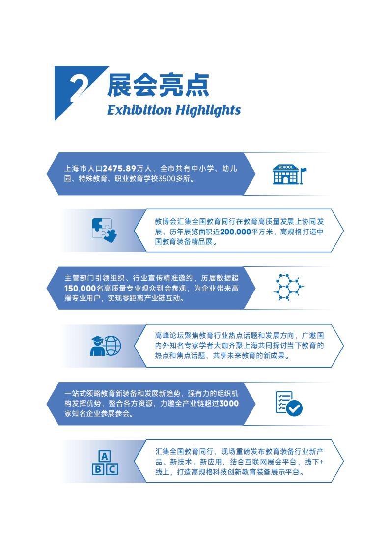 为了深入学习贯彻党的二十大精神,深入学习贯彻习近平总书记关于教育的重要论述,积极落实《中华人民共和国国民经济和社会发展第十四个五年规划和2035年远景目标纲要》《上海市教育发展“十四五”规划》等文件要求,加强国内外教育装备研究研发与运用管理的交流与合作,更好地服务社会主义现代化强国建设。“2024第七届中国国际教育装备(上海)博览会”,由中国教育装备行业协会、上海市教育学会主办,上海市教育委员会支持,上海市教育委员会教育技术装备中心、上海教育装备行业协会承办,并由上海申雅展览有限公司执行承办各项会务工作。博览会将于2024年3月15-17日在上海新国际博览中心隆重召开,博览会集教育全产业链办展思维,深挖行业资源,提升展会品质,全力打造“一年一度的教育装备盛会”,推动我国教育装备行业的高质量发展。