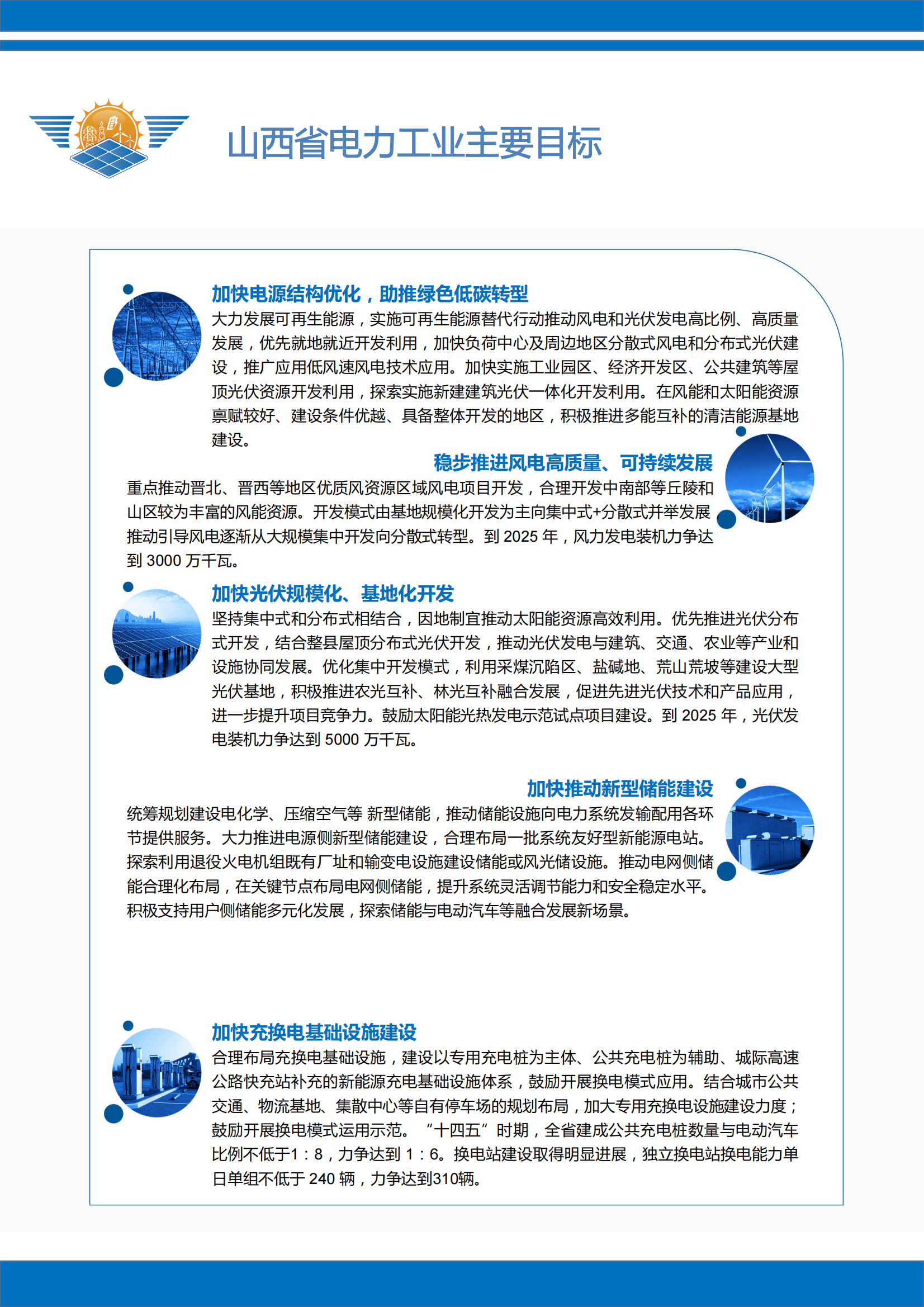 为全面贯彻习近平总书记能源安全新战略和视察山西重要讲话重要指示精神,山西作为全国唯一的全省域国家资源型经济转型发展综合配套改革试验区、能源革命综合改革试点,在全国能源电力发展格局中具有不可替代的重要战略地位。积极响应《山西省可再生能源发展“+四五”规划》(晋能源新能源发[2022)369号)、《山西省电力工业“十四五”发展规划》(晋能源规[2023]44号)、《“十四五”新型储能发展实施方案》(晋能源新能源发[2022]353号)、《山西省煤炭清高效利用促进条例》等文件精神。依托山西“全国综合能源基地”“国家资源型经济转型发展综合配套改革试验区”“能源革命综合改革试点”定位,锚定“四个革命、一个合作”能源安全新战略,推进“五大基地”建设和能源产业“五个一体化”融合发展,助力山西能源革命综合改革试点工作迈向高质量。